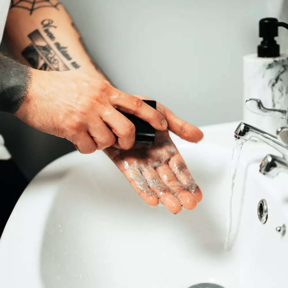 Zmocz mydło w ciepłej wodzie aż powstanie obfita piana, a następnie masuj okrężnymi ruchami włosy i skórę. Dokładnie spłucz. Unikaj kontaktu z oczami.