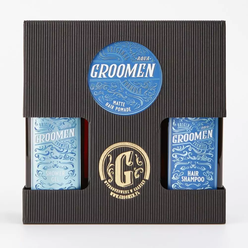 Zestaw do ciała i włosów Aqua - Groomen to kompletne odświeżenie na każdy dzień. Twoja codzienna pielęgnacja nigdy nie była bardziej przyjemna i odświeżająca dzięki zestawowi do ciała i Włosów Aqua - Groomen. To zestaw składający się z trzech elementów, który zawiera wszystko, czego potrzebujesz, aby zadbać o swoje ciało i włosy, a wszystko to w otoczeniu orzeźwiających nut morskiej bryzy, igieł sosny i ziół.