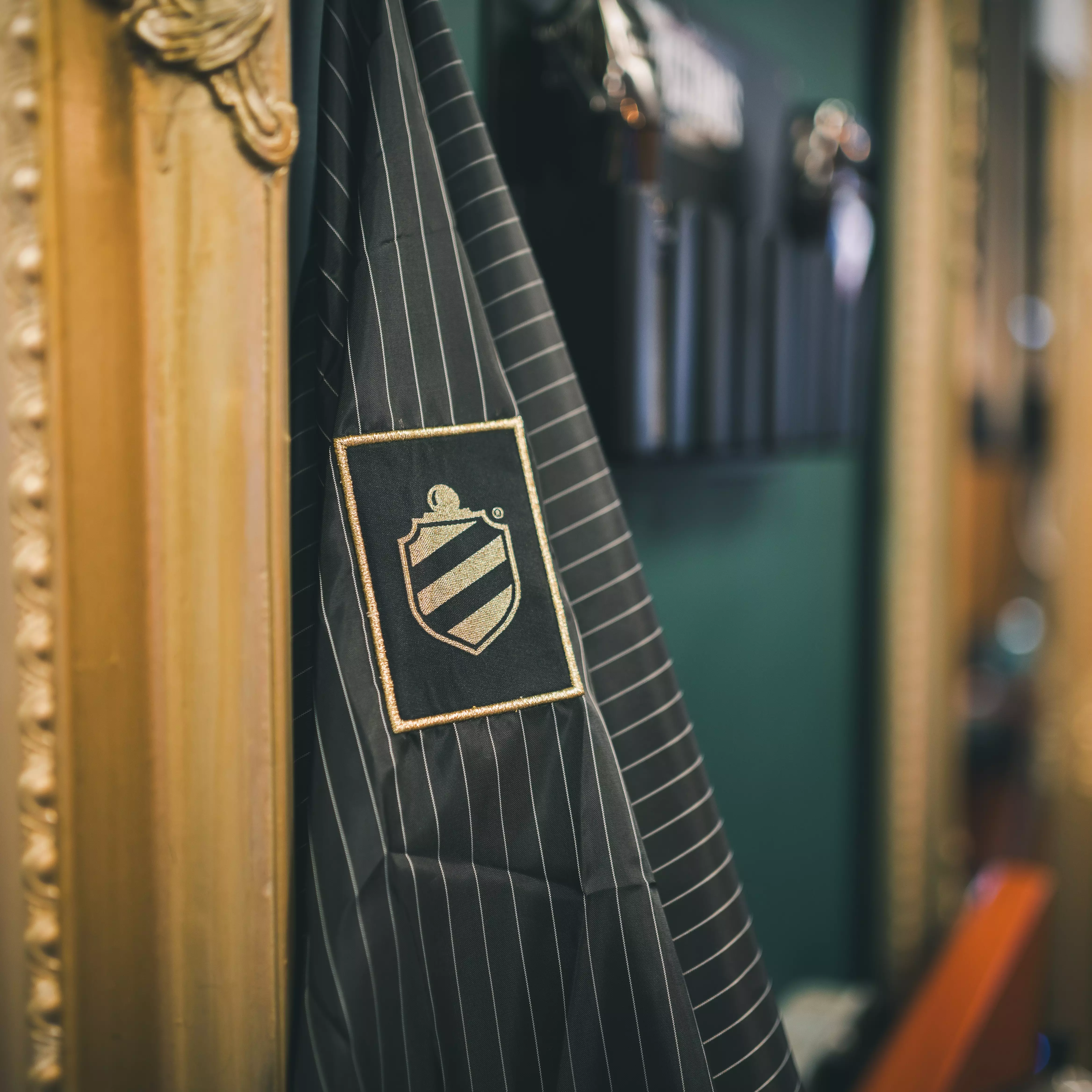 - dekorowany złotą nicią, tkaną tarczą i ozdobnym guzikiem do zapięcia